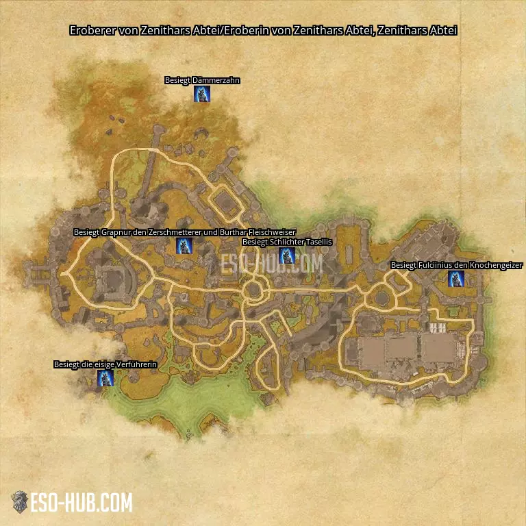 - Standort 5: Zenithars Abtei, Eroberer von Zenithars Abtei/Eroberin von Zenithars Abtei: Besiegt Fulciinius den Knochengeizer