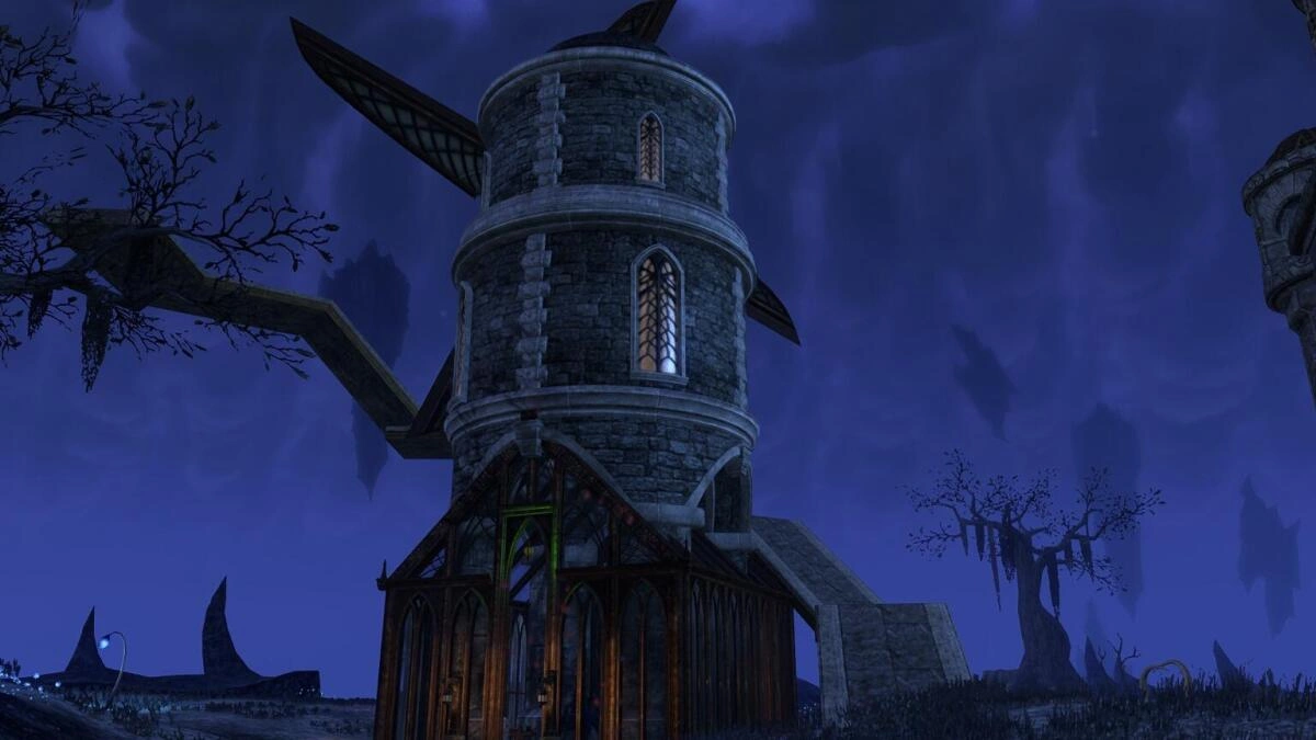 I first got my Coldharbour area because it was so spacious (at the time). My friends and I decided that it would be cool to build a castle here. We are almost done building my castle. (all the following info assumes you are looking at the castle from the front door). You can see the mundus stones on the right side. There is an outfit station up the stairs and to the left. There is my version of a grain mill on the left (still a work in progress). On the third floor and to the right, you can see the main bedroom. I have a canopy bed (complete with a mirror on the top of it). The very top of the castle is where I plan to set up defenses. You can already see how several steps and towers and railings are made for archers to simply rain down arrows as much as they want. I also see Mirri at the top looking like she is about to kill herself by jumping off the roof. Behind the Castle, you will find a couple outhouses, There is also a pathway, and there is a hidden surprise somewhere behind the castle, and although it (the surprise hidden area) is not complete, you can go there…..It too is a work in progress. But if you want to know if you found the secret area, my best hint is “you have to walk down a bridge”. You might See Keldora wandering around. She is my maid and supposed to clean up, but I never see her cleaning, she must be lazy.