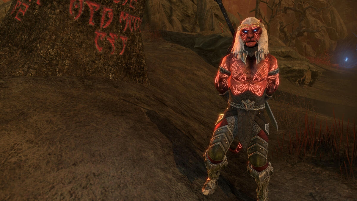 The glow of the Deadlands has seeped into your very essence, causing your skin to both redden and blacken. The brands of Mehrunes Dagon's realm blaze upon you. Do not fail him.