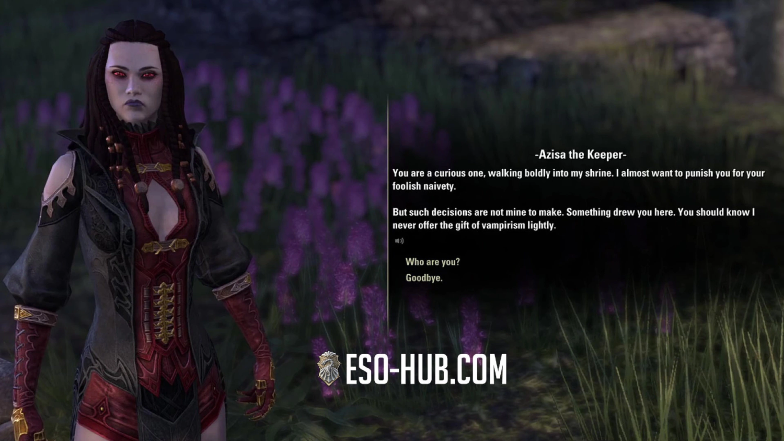 | NPC Quest Givers | Azisa The Keeper NPC starts the Vampire quest at each new shrine |