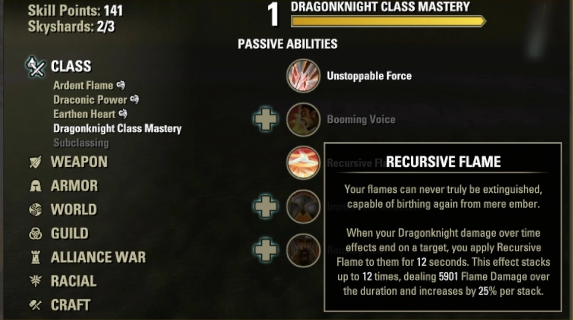 ESO Dragonknight Class Mastery Passives