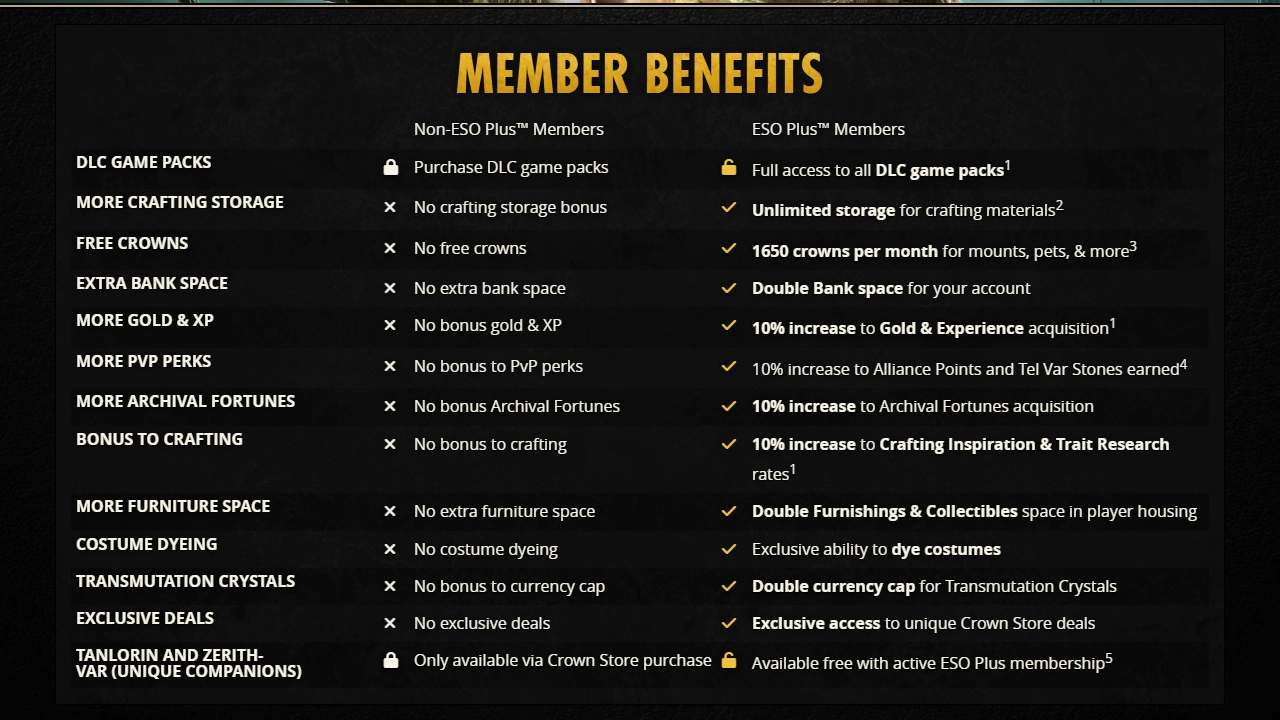 All ESO Plus Membership Perks Listed for 2026