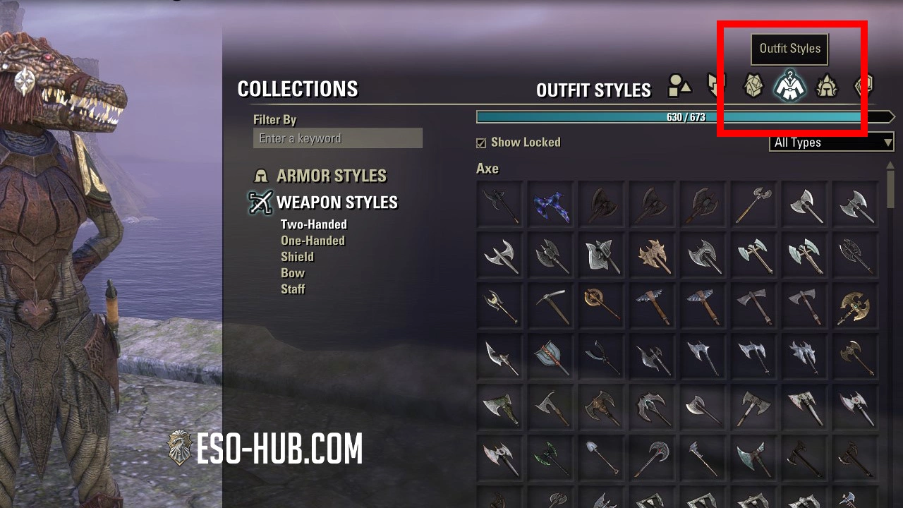- Toggle "Show Locked" to hide or show unlearned styles