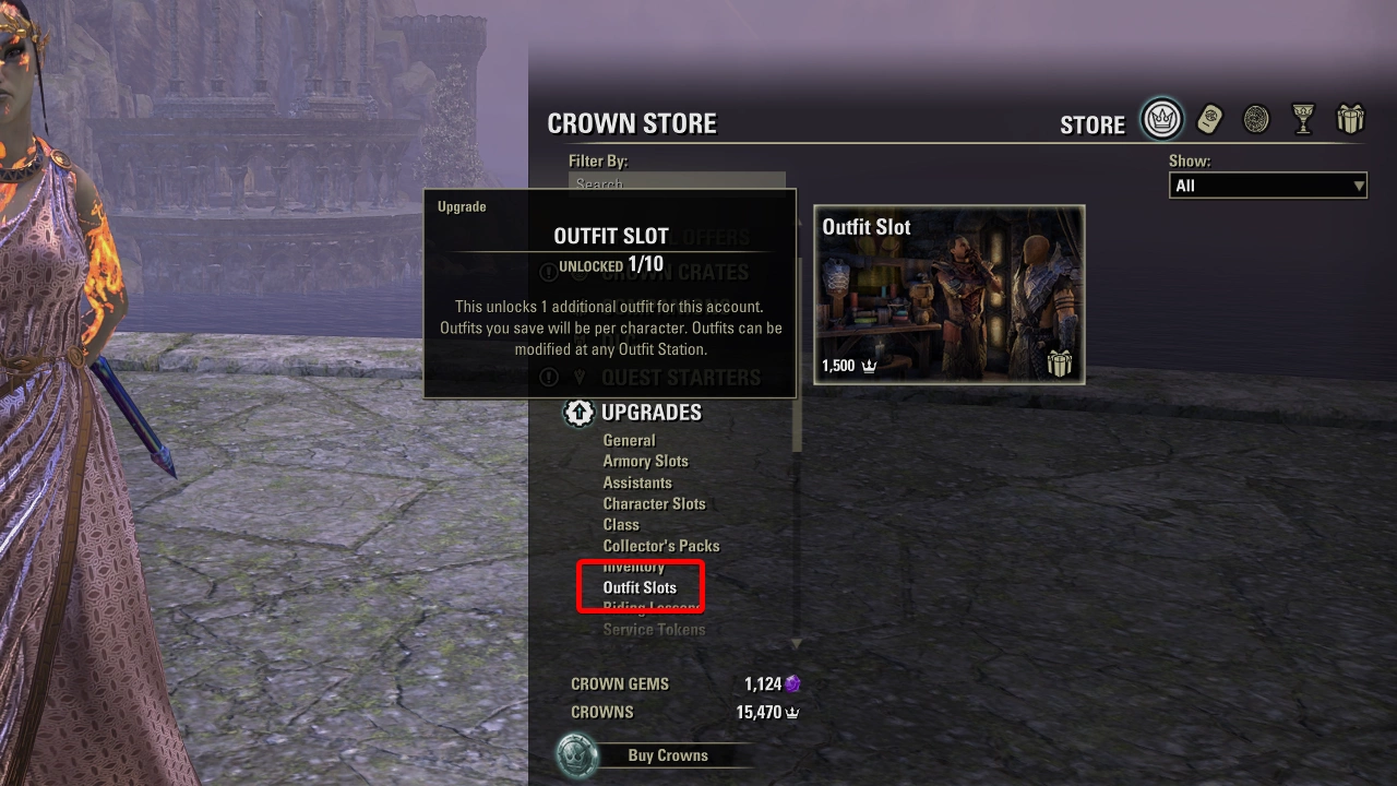 Every player gets one outfit slot per character by default.