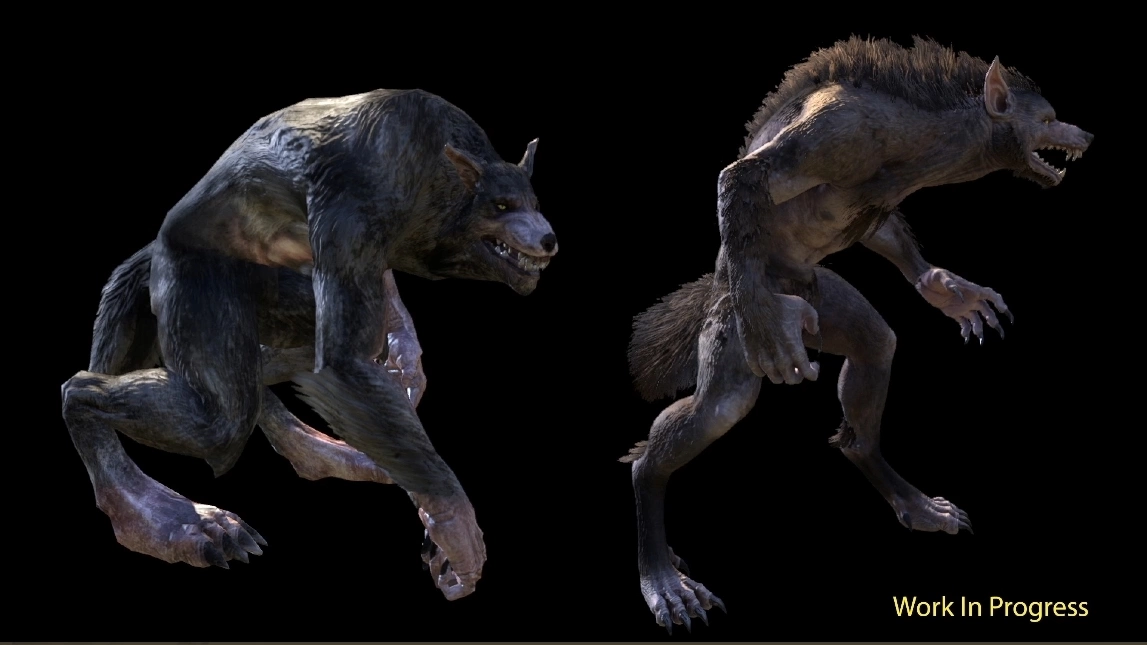 - Female werewolf model is in development but not ready to show. The direction is "beast, not sexy werewolf." Expect longer tails, different fur density and adjusted musculature.
