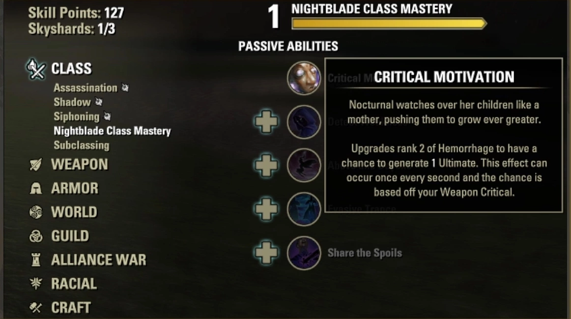 ESO Nightblade Class Mastery