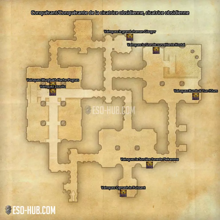 - Lieu 3: cicatrice obsidienne, Conquérant/Conquérante de la cicatrice obsidienne: Vainquez Bumbuk Tue-l'Ours