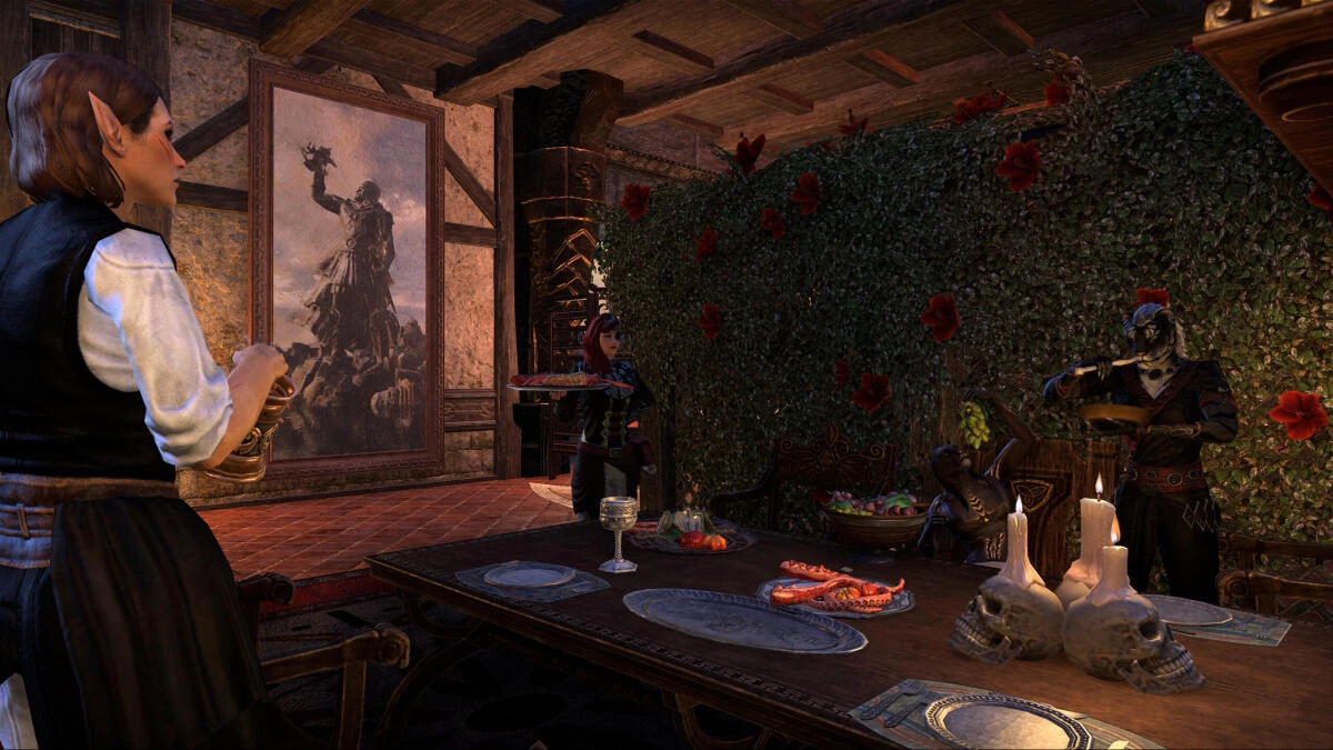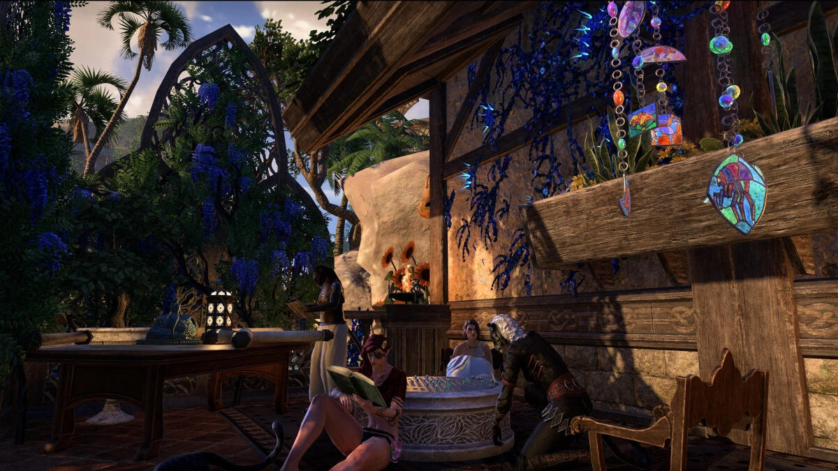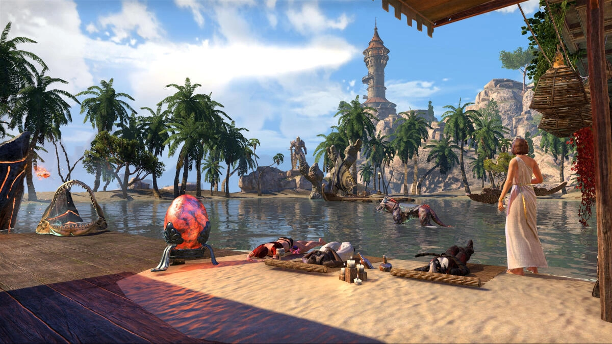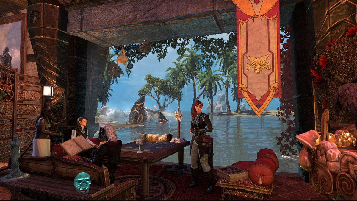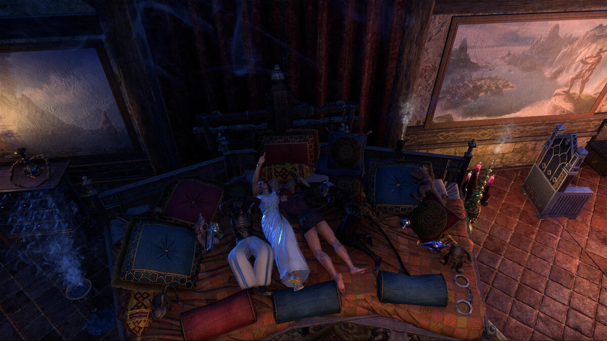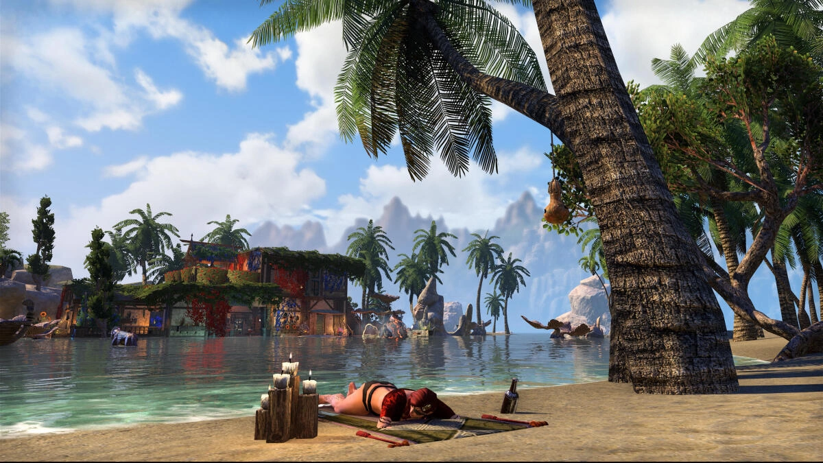 This is a roleplay house I built partially out of frustration at High Isle's lack of a beach house. Within you'll find a beach side estate belonging to my eccentric and recluse Breton noble, featuring an extravagant (and impractical!) bathroom, a bedroom cloaked in fog away from the sun's rays, plenty of wine, drink and food and beachside areas to relax.