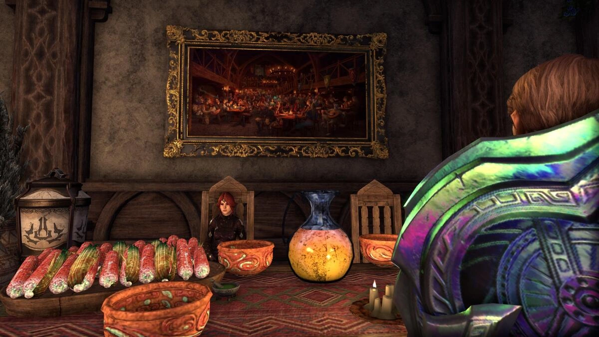 Welcome to my Santa Fe-style home with all the traditional art and food you would expect in the Southwest. As an immigrant to Canada, I miss New Mexico and creating this little slice of home in Tamriel helps my homesickness. I scour the markets of Tamriel and frequent the Luxury Vendor in Craglorn to add to furnish in western-style. I hope you enjoy the warmth and safety of this functional sanctuary and Guild Hall for the @DapperDarlings.