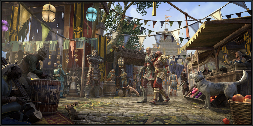 Базар Золотого Берега — это особый раздел кронного магазина который позволяет приобретать предметы из предыдущих обновлений за торговые слитки. Получить торговые слитки можно выполняя задания Фолиантов Тамриэля участвуя в событиях и сражаясь в PvP.